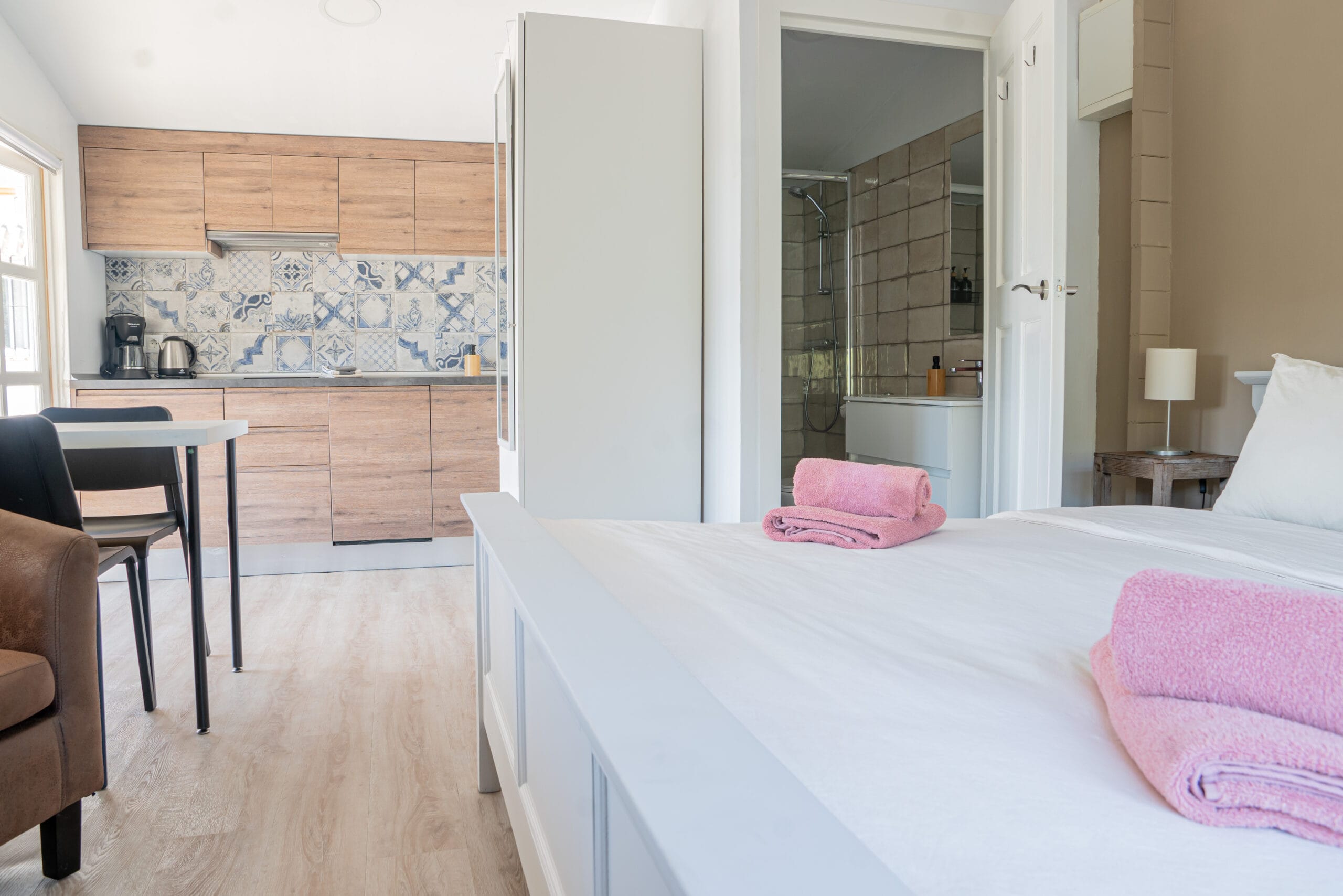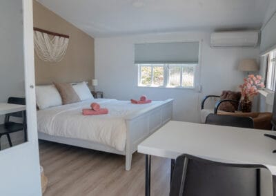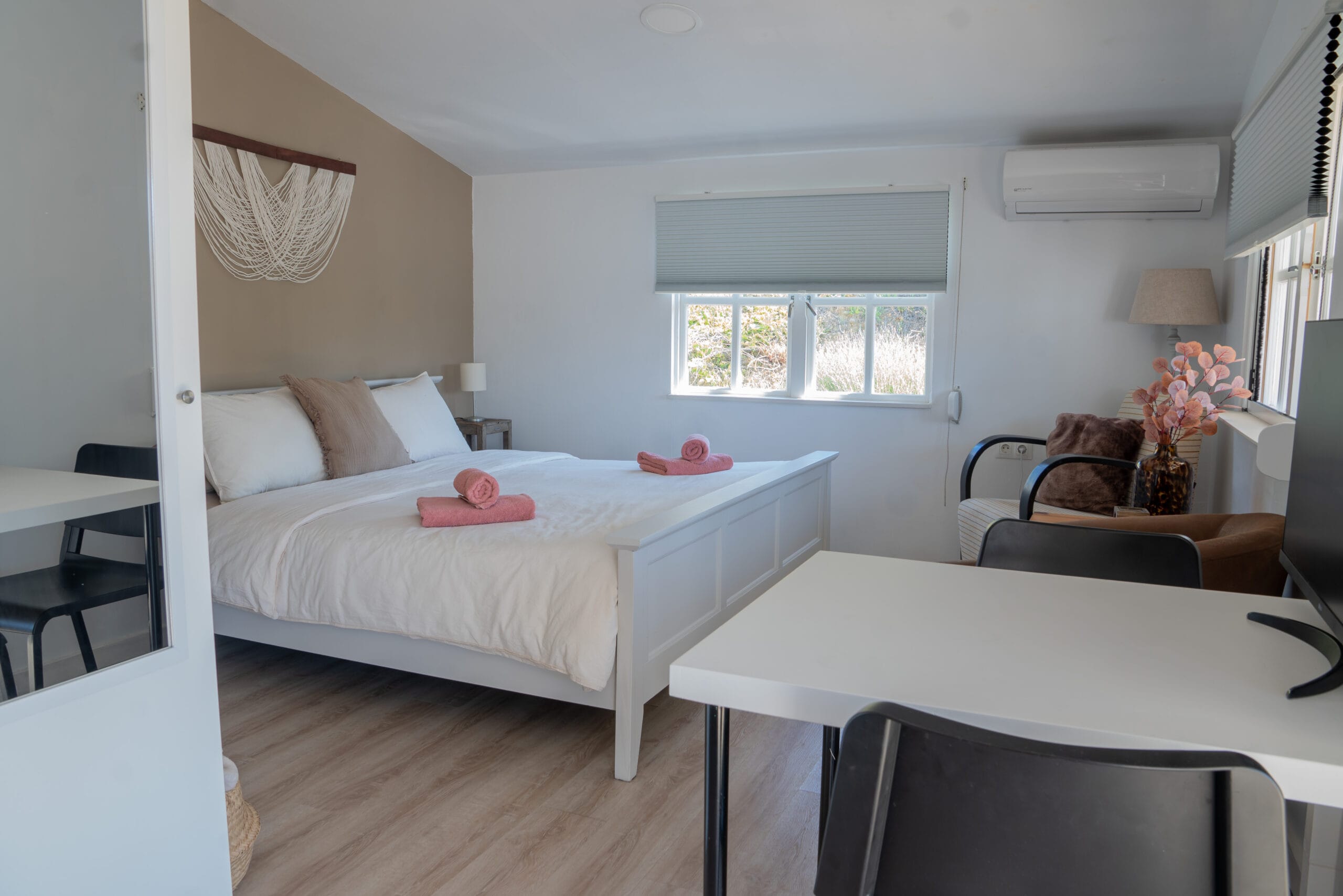 De kamer is voorzien van airco, TV en snelle WiFi. Ook de keuken is van alle gemakken voorzien, van vaatwasser tot volledige kookgelegenheid en koelkast met vriesvak.