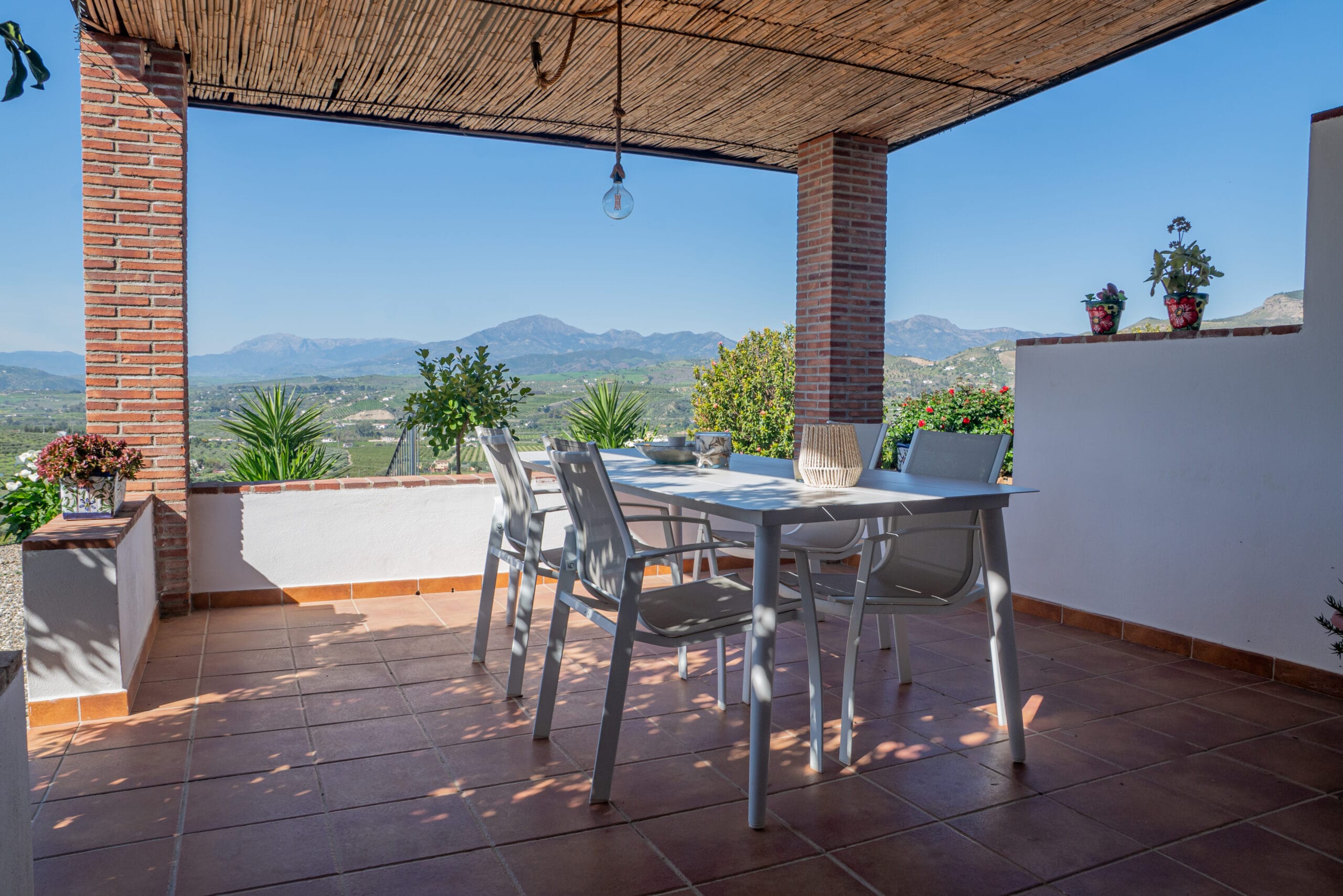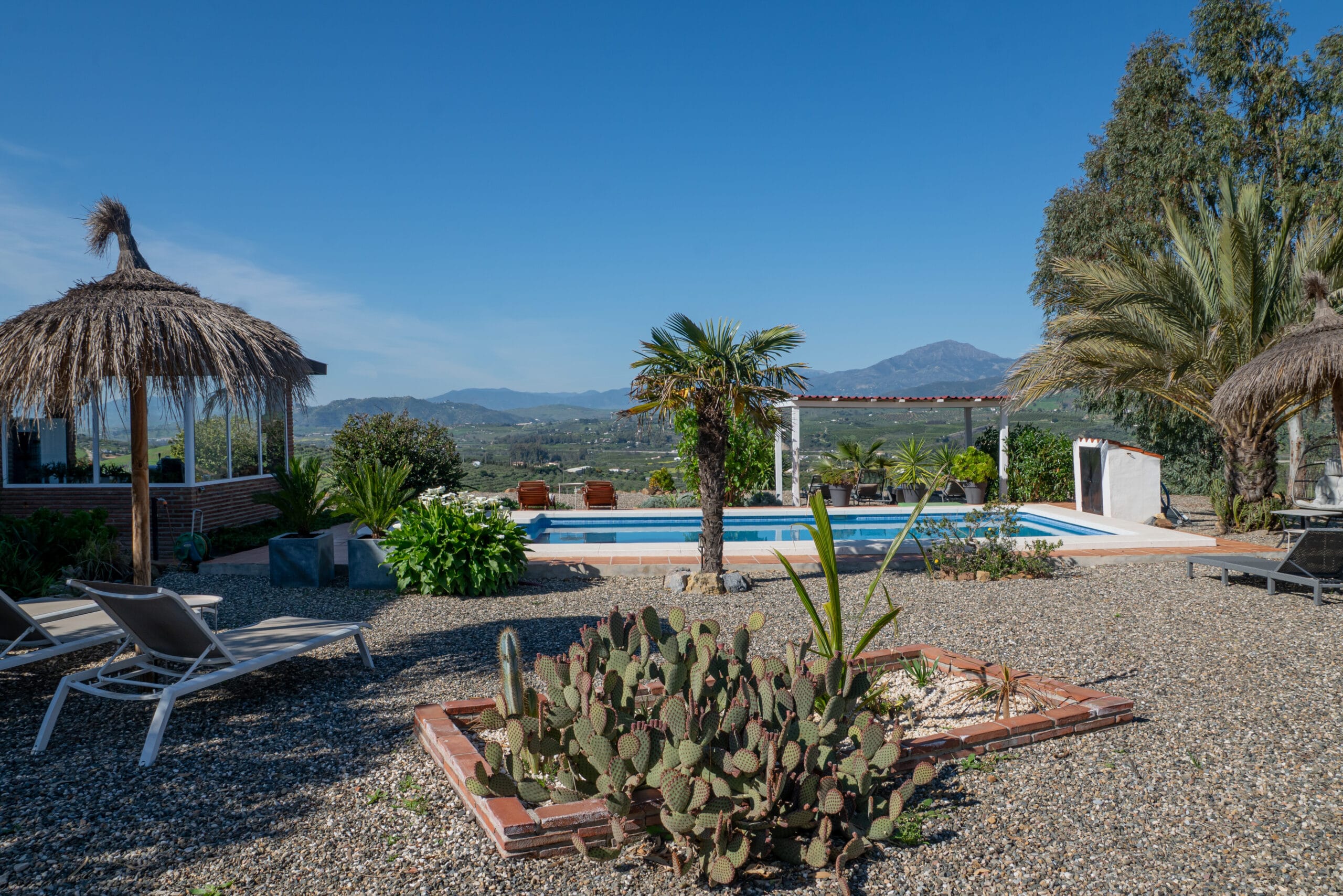 Bij Finca Feliz Andaluz krijg je rust, kun je relaxen en heb je tijd voor elkaar. Je kunt heerlijk fruit plukken uit onze fruittuin, door onze tuin wandelen, op je eigen ruime terras zitten genieten van het panoramische uitzicht over de Zonnevallei, de bergen en het witte dorp Alora. Ook kun je heerlijk zwemmen in het zwembad en relaxen op de ligbedden. Ook ‘s-avonds is het adembenemend mooi met de ondergaande zon die de lucht in tig tinten oranje kleurt. Wanneer het donker is fonkelen duizenden sterren aan de hemel op onze plek waar het nog echt donker wordt.
