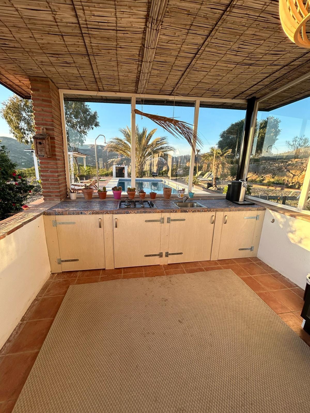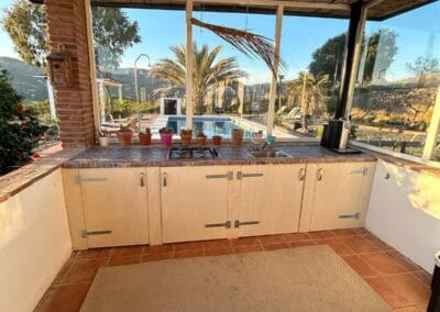 Zuid-Spanje heeft een aangenaam klimaat. Daarom speelt het leven zich hier veelal af in de buitenlucht. Daarom is de studio voorzien van een buitenkamer.
